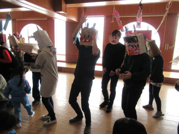 最後は、お家の人がお面を付けて、豆まきをしました!