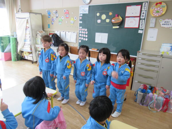 年中組で覚えた歌、詩、わらべうたを披露してくれました😄