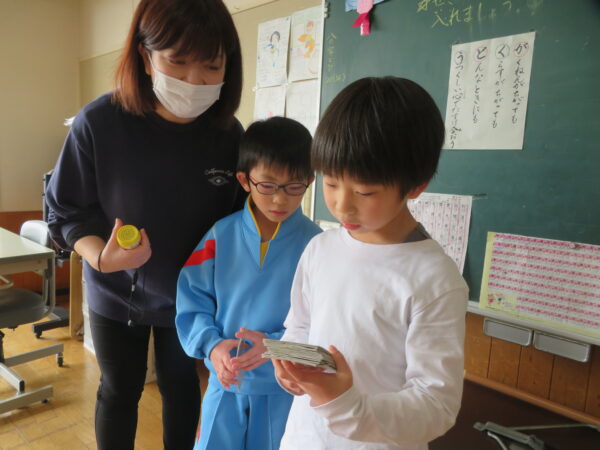 すずらん組さんはあみだくじ、ひまわり組さんはすごろくで遊びながら