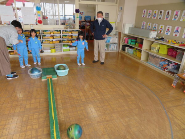 ジャンボかるたは年長さんが読み上げ、子ども達は札を取ろうと白熱した闘いを見せました!ボーリングはストライクを狙って何度も挑戦したり、わなげはコツをつかんで上手に投げたりしていました✨