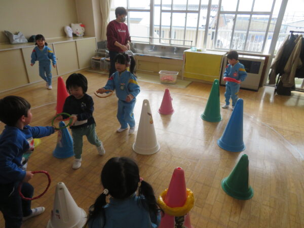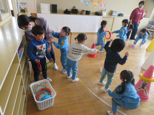 簡単なルールのあるゲームも楽しめるようになった子ども達。みんなが大好きなお引越しゲームをしました!お題は食べ物🍔🍣🍕🍜🍛「お腹すいたな、何食べたい?」の掛け声が元気いっぱいでした!