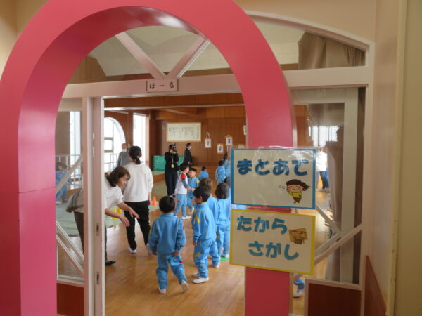 的に当たると大喜びの子どもたち。無事に鬼を退治できました😊