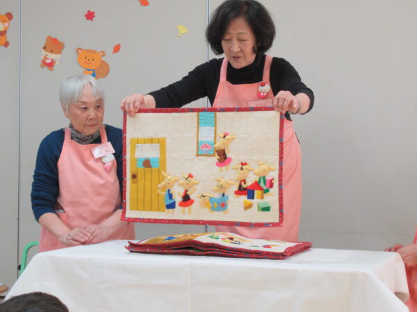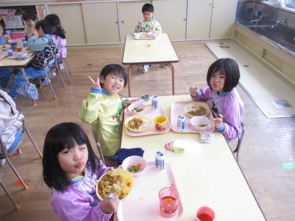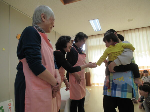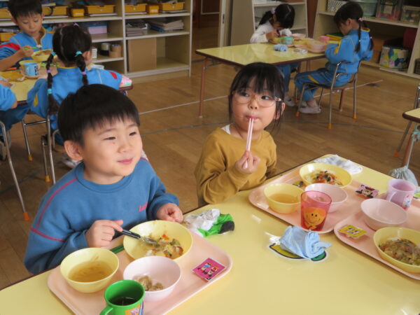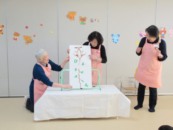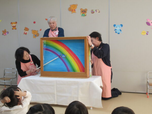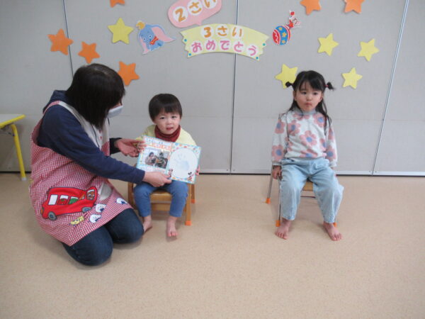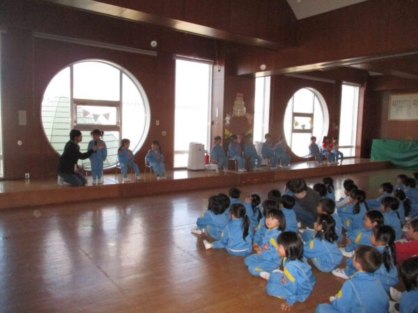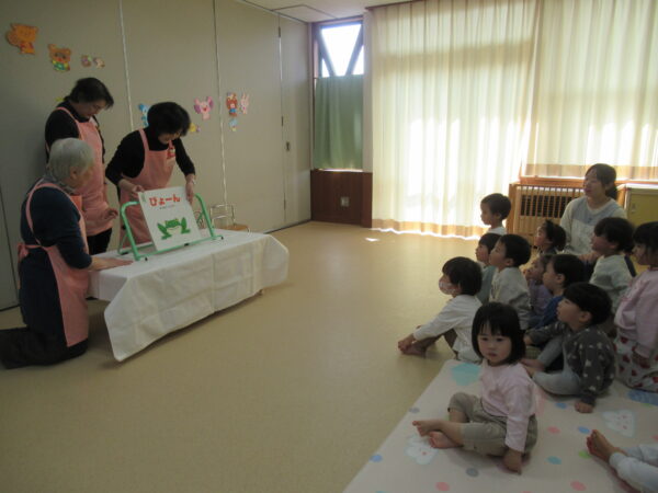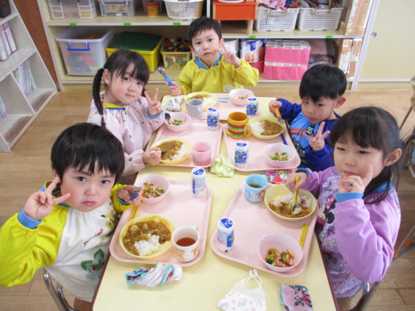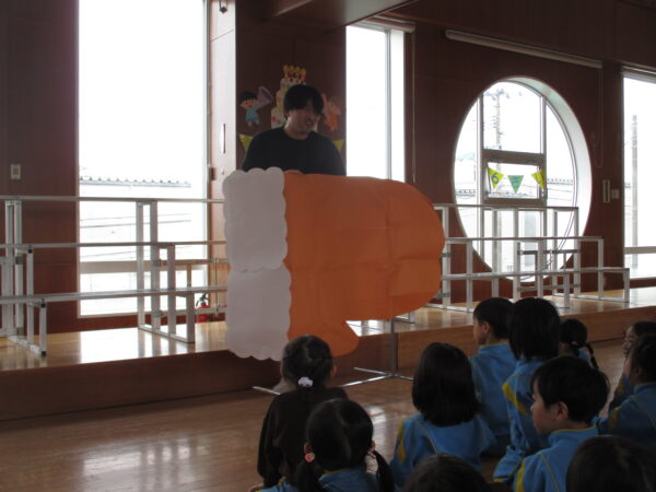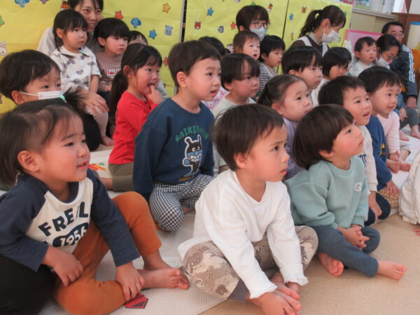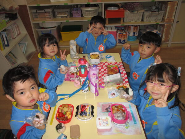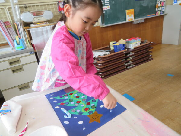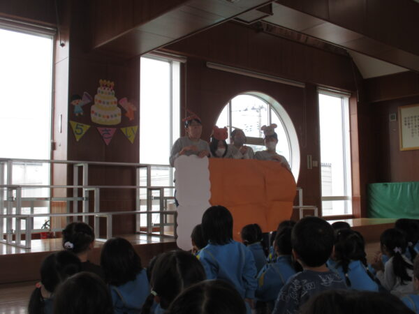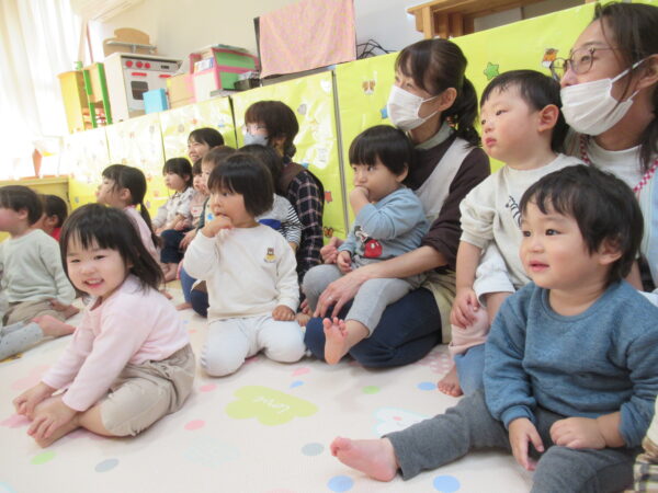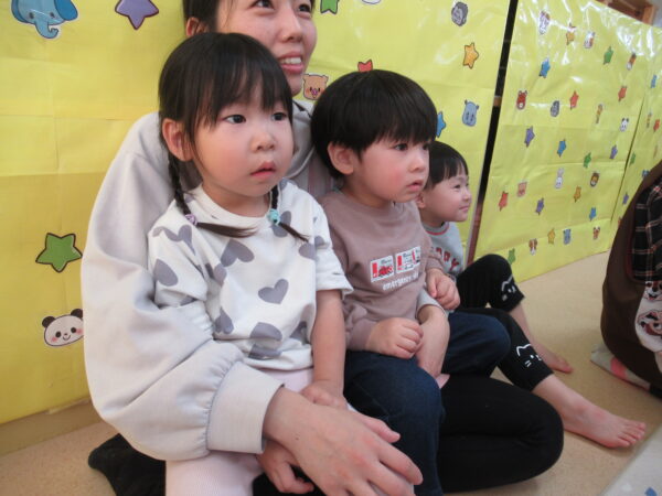製作遊びでは、冬の壁面製作をみんなで楽しんだ時にシマエナガを折り紙で作りました。そこから、シマエナガ屋さんが始まりました!たくさんのシマエナガ友達にプレゼントしたり、年中、年少さんにプレゼントをしたり、お店屋さんごっこが展開しています。「お金がないから…」と言っていた友達には、「好きなの何羽でもいいよ!」と大盤振る舞いのお店屋さんです😊!