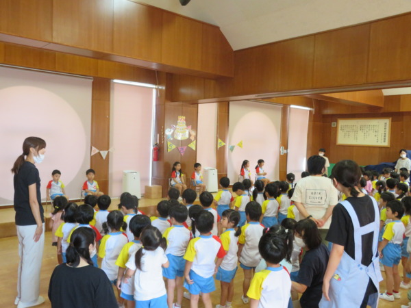 夏休み明け、すずらん組さんが揃い、嬉しそうな子ども達。久しぶりに会ったお友達や先生とぎゅー💛をしたり、夏休みの楽しかったことを話したりして元気に過ごしています。