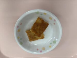 未満児さんの午後のおやつは、りんごケーキです。