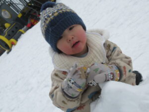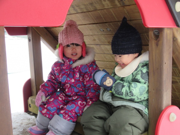 お部屋に戻ってからも「ゆきたのしかったね」「そり、またやりたい」と嬉しそうに話すひよこ組さんでした。「今度は雪だるまを作りたいね」と楽しみにしています♪