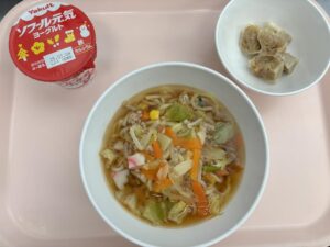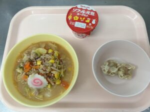 今日の給食は、みそラーメン(未満児さんはしょうゆ)・しゅうまい・ヨーグルトです。