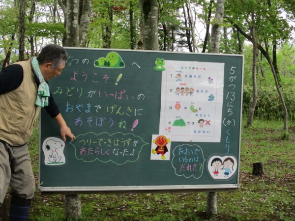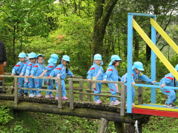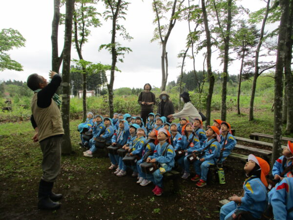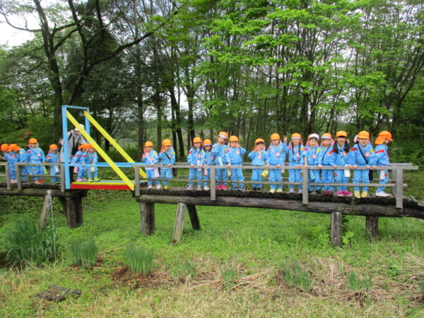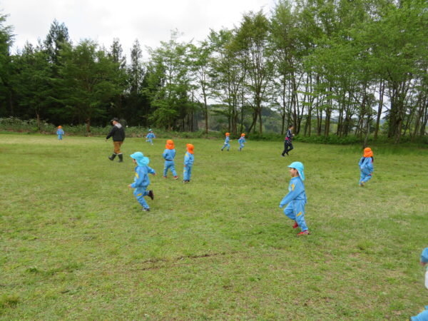 林の教室で、園長先生やおやまの先生のお話を聞いて、早速レッツゴー✊