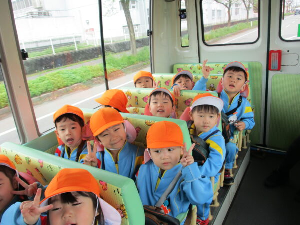 久しぶりの園外活動で、バスの中からウキウキ・ワクワクしている子ども達😄