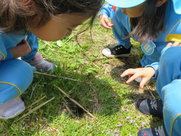 太陽の広場ではお友達や先生と鬼ごっこや生き物探しをしました!広い場所で思い切り遊ぶことができました!