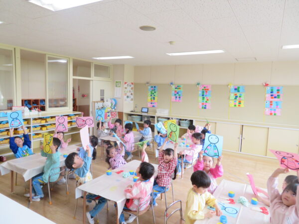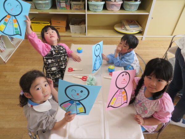 園ではみんなでてるてる坊主を作りました!梅雨でも外でたくさん遊べるように雨☔が降らないよう願いを込めながらかわいいてるてる坊主を作りました!クレヨン🖍や色画用紙でいろいろな色を使ってカラフルにかわいく描けました!