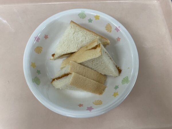 未満児さんの午後の手作りおやつは、きなこサンドです。