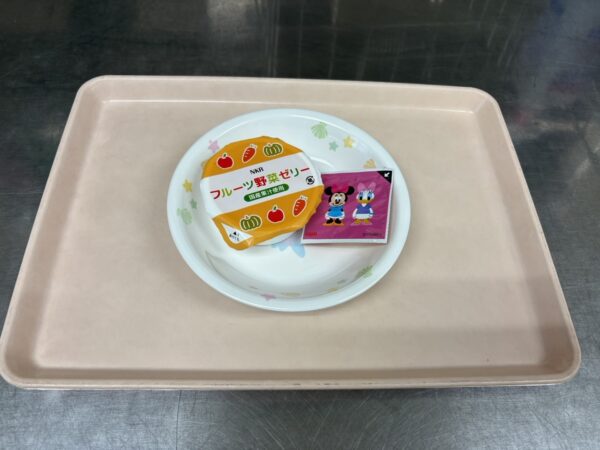 未満児さんの午後のおやつは、お野菜ゼリー&チーズです。