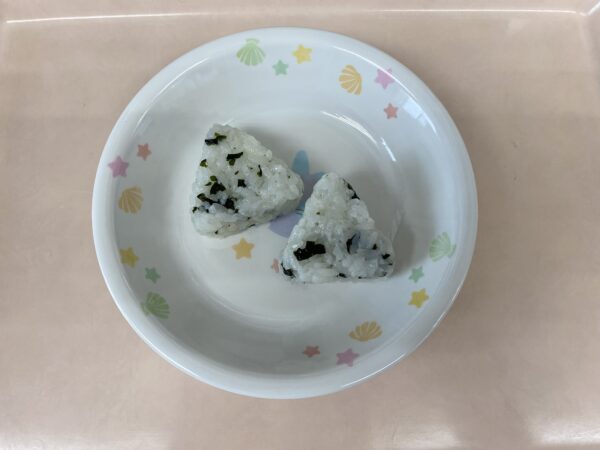未満児さんの午後の手作りおやつは、わかめおにぎりです。