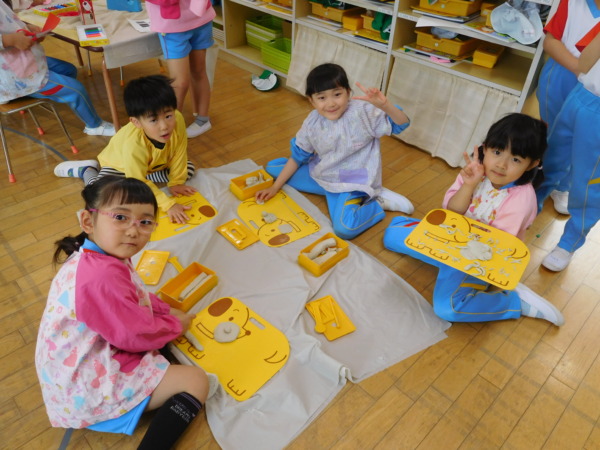 製作好きなお友達も多く、折り紙の折り方をお互いに教え合ったり、おそろいのバックを作って遊んでいました。