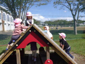 最近は、クライミングが大好きないちご組さん!はじめは、手足を掛けるところを先生に教えてもらいながら、登っていましたが、最近は一人で上り下りをして、「一人で出来たよ!もう一回やってみる!」と何度もチャレンジしています😆
