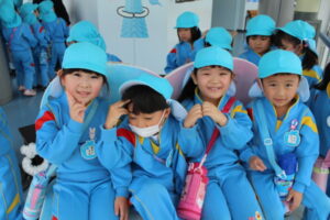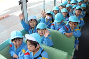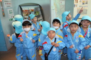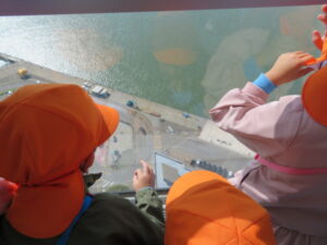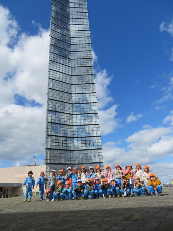 エレベーターに乗り、地上100mの展望台へ!どんどん上へあがるエレベーターの中からひまわり組さんを見つけ、大喜びのすずらん組さん。「ひまわり組さん、赤ちゃんみたい~!」とかわいい子ども達です💕