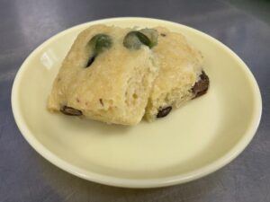 午後のおやつは、豆蒸しパンです。
