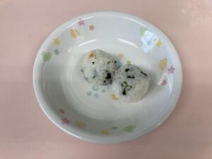 午後の未満児さんのおやつは、鮭わかめおにぎりです。
