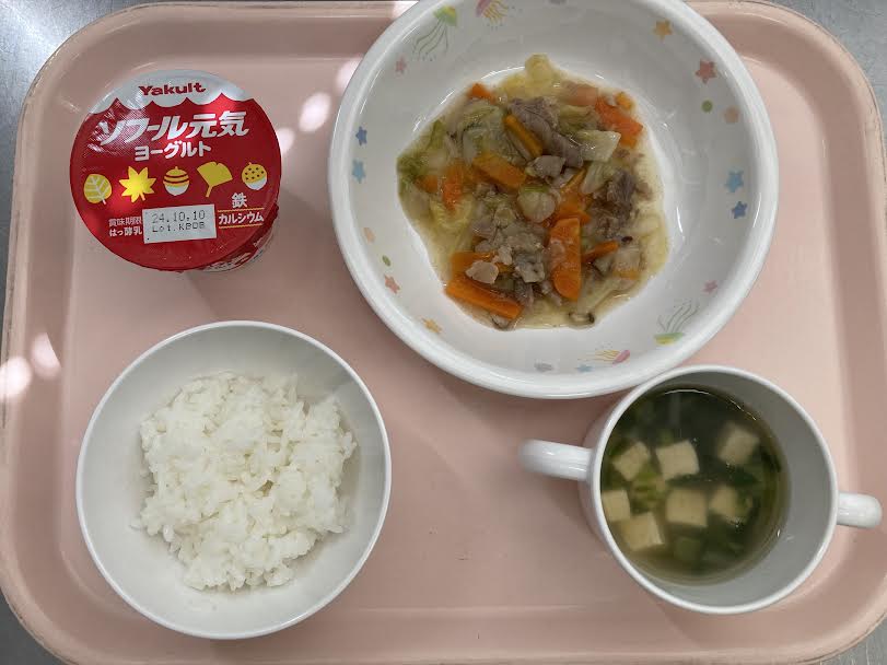 ごはん・とうふスープ・中華煮・ヨーグルトです。