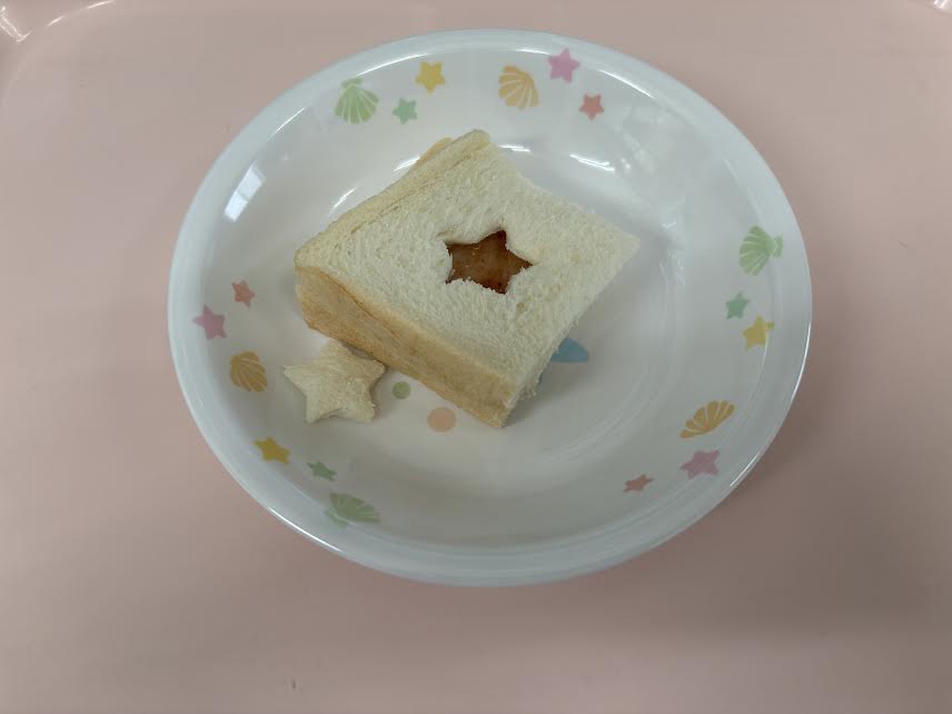 午後の未満児さんのおやつは、ジャムサンドです。