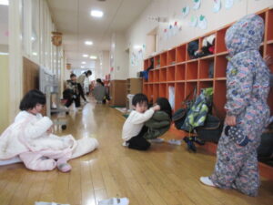 登園してから、朝の支度を頑張っています。スキージャンパーを畳むのも上手になってきましたよ✨
