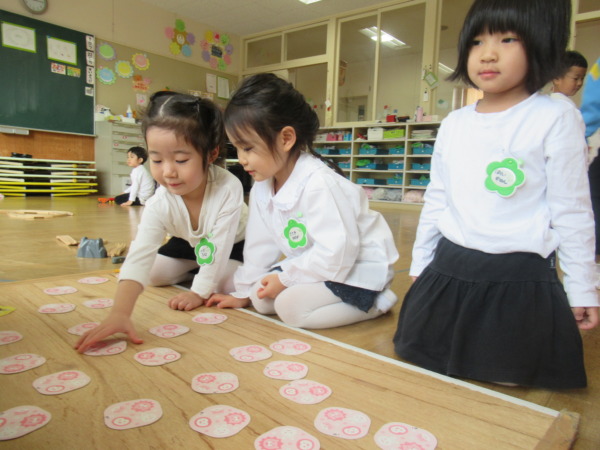 絵合わせカードをして、みんなで遊びました。カードをめくる前に、「どこかな~?」と探す姿が可愛いです💕
