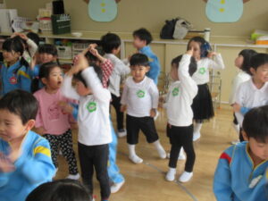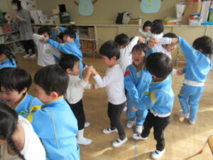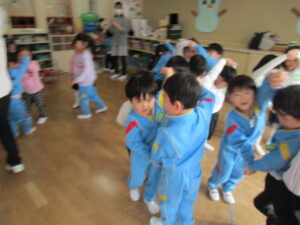 みんなで『赤鬼と青鬼のタンゴ』を踊って、大盛り上がりでした😊友達と手をつないで2人組になって踊るところが面白く、気に入っていました!