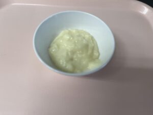 午後の未満児さんのおやつは、ミルクゼリーです。